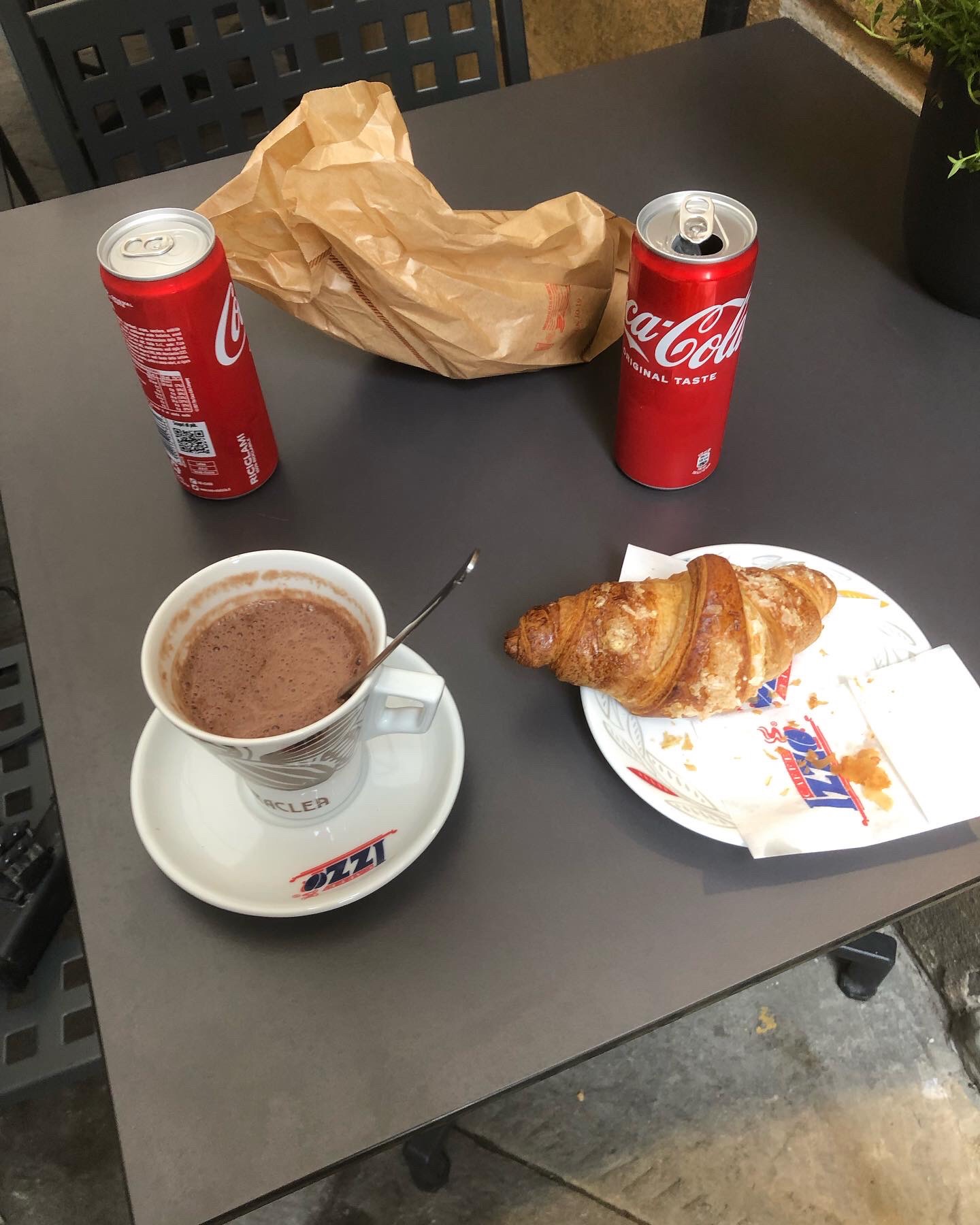 In Siena gönne ich mir erst einmal ein leckeres Frühstück, kümmere mich um Epidermispflege im Bereich der Sonneneinstrahlung bzw. Sattelkontaktpunkte und fülle auch meine Taschen mit allerlei hochkalorischem Nachschub – das Bild zeigt nur den ersten Gang 😉 Frisch gestärkt, kann ich mich kurz nach Siena sogar auf Platz 2 vorschieben.